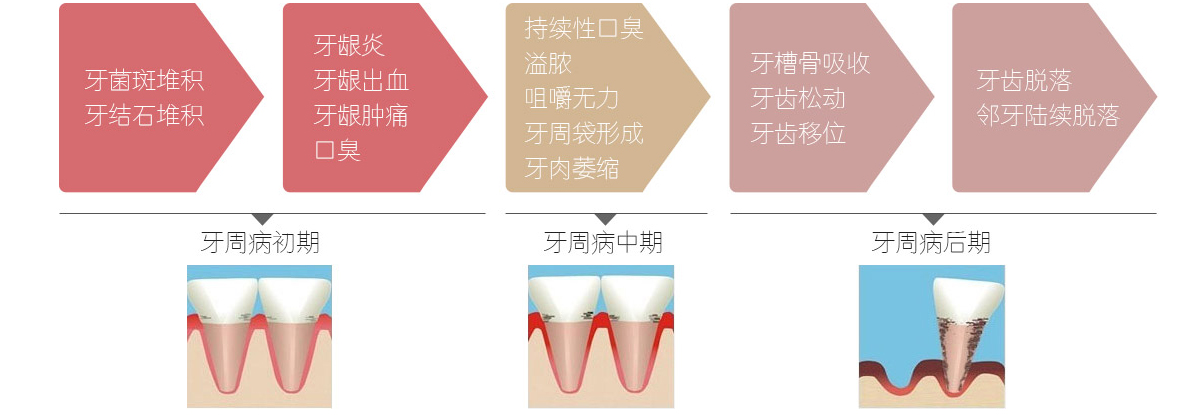 牙周炎主要是由局部因素引起的牙周支持组织的慢性炎症。发病年龄以35岁以后较为多见。如龈炎未能及时治疗,炎症可由牙龈向深层扩散到牙周膜、牙槽骨和牙骨质而发展为牙周炎。由于早期多无明显自觉症状而易被忽视,待有症状时已较严重,甚至已不能保留牙齿。因而必须加强宣教,使患者早期就诊和及时治疗。