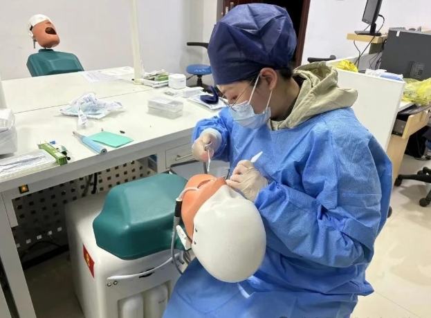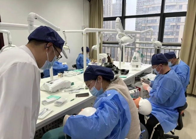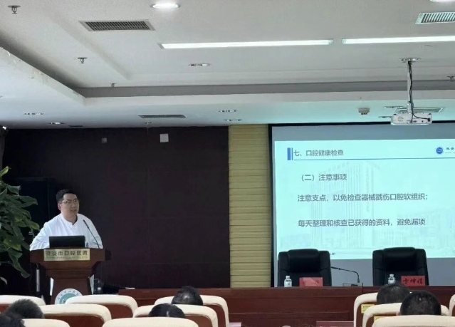 市项目技术负责人王文献为全体参会人员讲解相关专业技术和项目规范要求,并针对技术骨干开展窝沟封闭、涂氟操作实践培训,现场指导答疑并完成考核,切实提升技术骨干实操能力,为后续项目进校园开展标准化操作筑牢专业支撑。